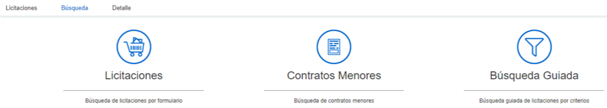 - Licitaciones, búsqueda de licitaciones públicas con el rellenado de un formulario de búsqueda.