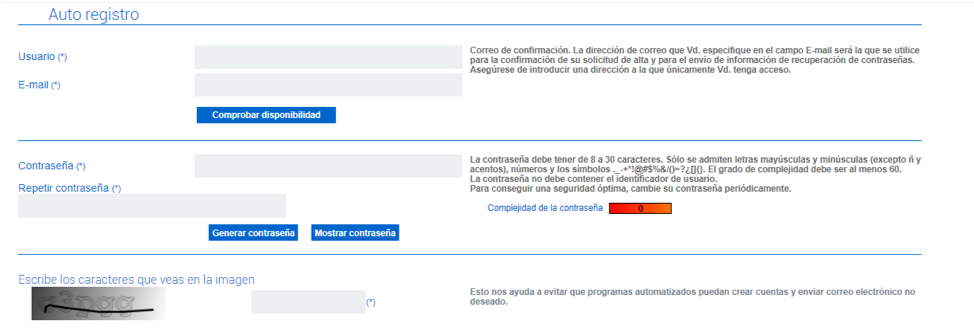 - Introducir: Nombre Usuario, E-mail* y contraseña.