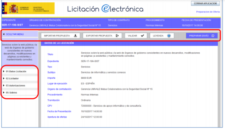 - La Herramienta de Preparación y Presentación de Ofertas, aplicación para el envío de documentación de ofertas que asegura la integridad, autenticidad, y confidencialidad de las proposiciones.